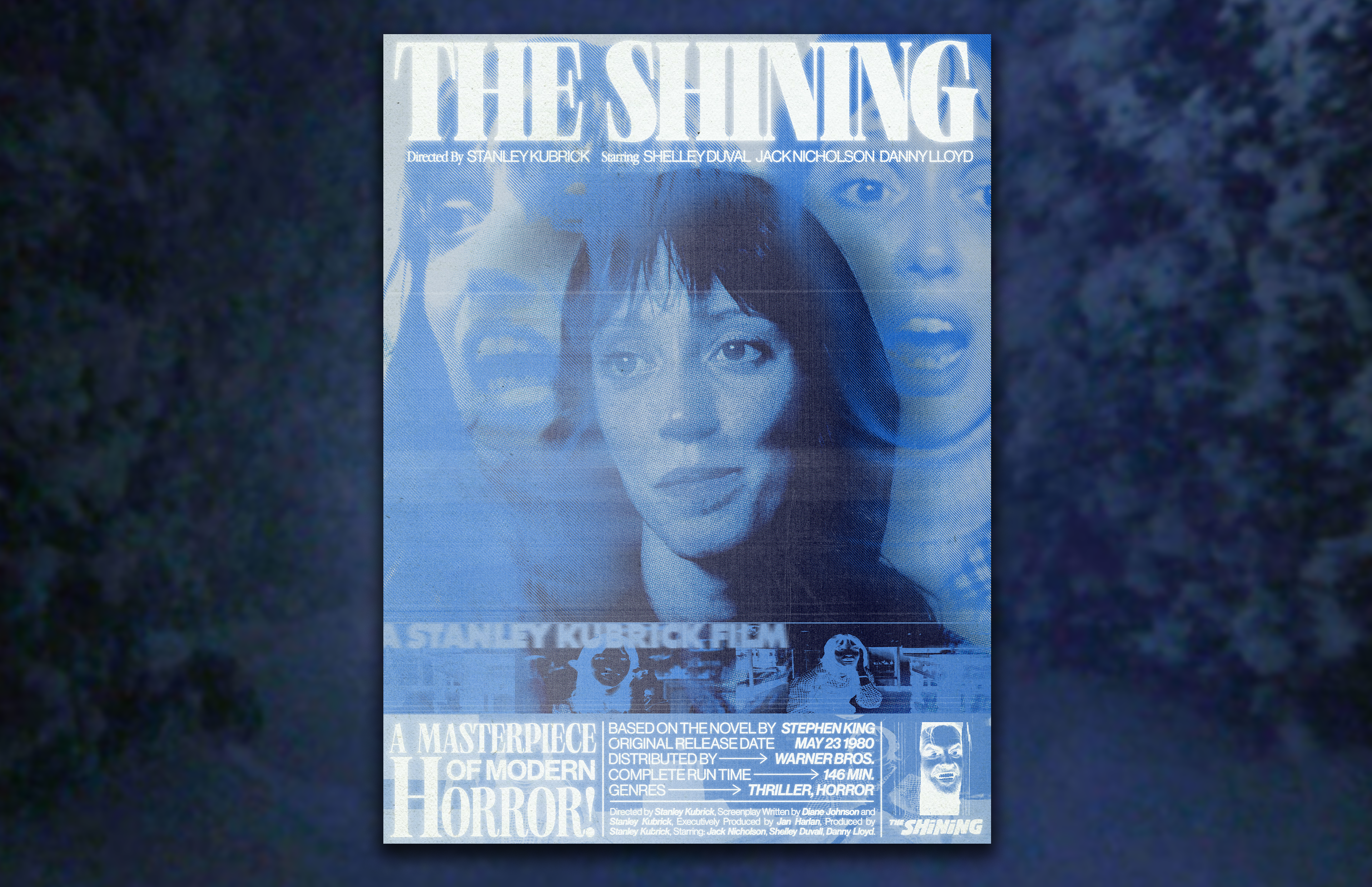 The Shining is an incredibly dense film – visually, symbolically, and thematically. I wanted to portray the theme of dark shadows throughout my posters while paying homage to the original Shining posters. Additionally, each design's color relates to scenes in the film when that poster's respective character made realizations about the past, present, or future.